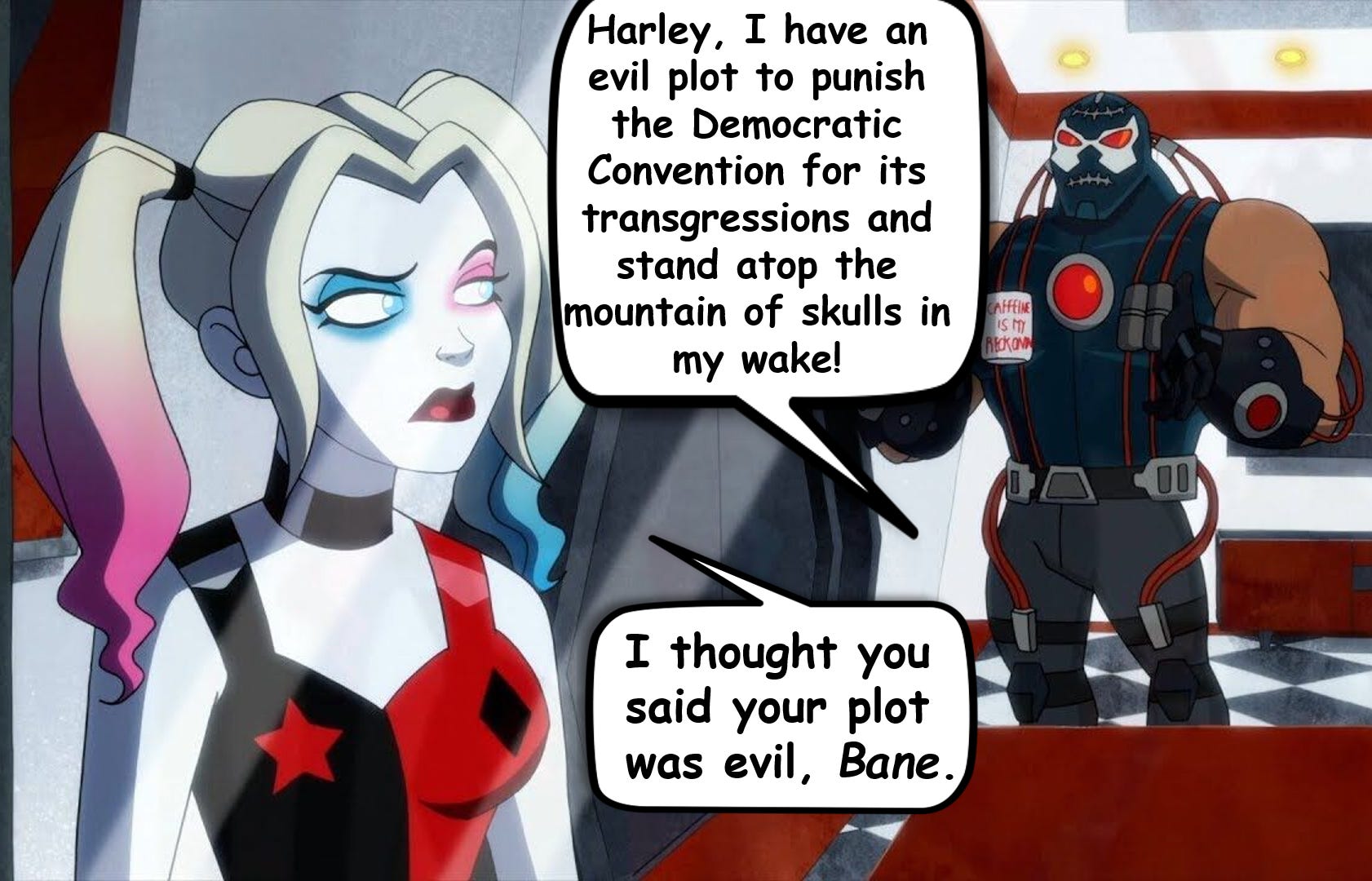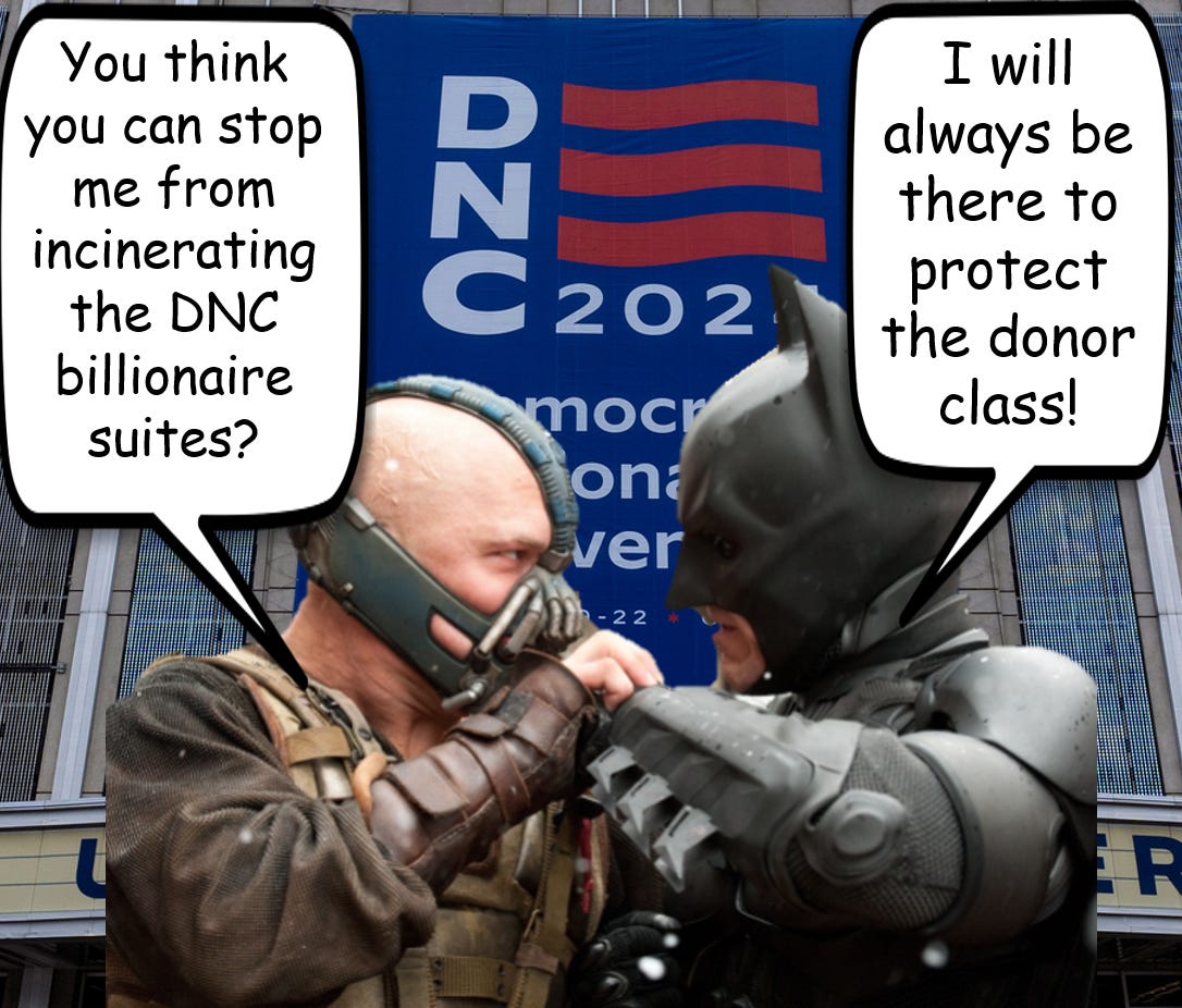 The Democratic National Convention dominated the airwaves last week, pushing the marketing line that they are the party of joy while the Republicans are the party of weird. Liberal pundits hyping the event were fine with, even happy, with it being about vibes over substance. It was such a slog to sit through all the flashy graphics and dishonest speeches I wished for a supervillian to crash in and destroy the whole charade. This reminded me of the themes of the Christopher Nolan Batman movies with the Joker portrayed as an anarchist who wanted to see the world burn and Bane being a revolutionary socialist who wanted to destroy and replace Gotham’s police state government. Also in the satirical Harley Quinn animated series there is a plotline where the Joker runs for mayor of Gotham on a socialist platform and wins. This isn’t limited to Batman as leftist movie makers have always been trying to find ways of sneaking in economically progressive ideas into movies under the noses of the capitalist movie barons.