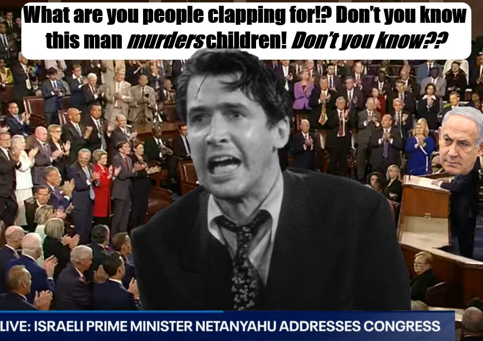 A few chose not to attend out of protest, but most of our congress were there to provide huge applause breaks every time Netanyahu lied about his conduct prosecuting the genocide. America has always supported Israel without waver for its entire existence and this is a built-in evil in our system. Could it ever be broken by protest and boycotts the way America’s support for South African Apartheid was broken? So far the protests have made the Biden administration change their rhetoric on Gaza but not their policy.