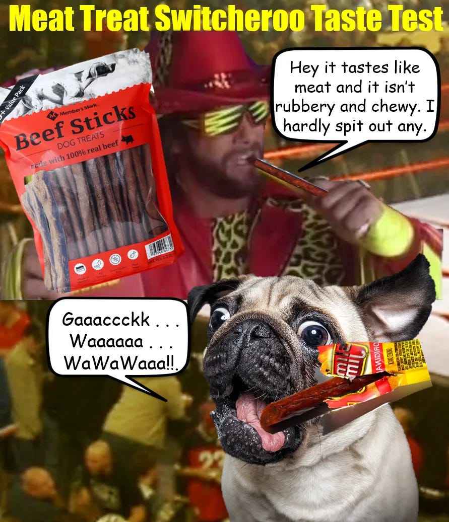 I wanted to throw the above dog food meme in there, showing if you switched Slim Jim with dog treats people wouldn’t know the difference. It has long outraged me that the so-called Jerky Slim Jim, which sells a billion units annually, is sold to humans. This even being called jerky is debatable as it is a combination of chicken, pork and beef and has almost a pepperoni vibe. It has a slimy texture and is so chewy that half of the stick ends up getting spit out. I have fed it to dogs who ate most of it but also spit out the gristle. If this was re-branded and sold to dogs no one would know the difference. Why would anyone buy this when there is better beef jerky sitting right next to it at the gas station?